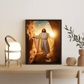 Quadro decorativo jesus ressuscitando 24x18cm Moldura: madeira branca Informações do produto tire todas as suas dúvidas no descritivo abaixo: decoração para quarto, sala, cozinha, escritório, área gourmet e muito mais. Chega de paredes vazias medidas - cada peça tem 24x18cm a5 . Material do papel - papel fotográfico brilhante de altíssima resolução acabamento - todos os quadros são acompanhados de uma película de acetato para proteção da imagem. - os quadros são embalados de forma segura com plástico bolha com camada dupla de acordo com o tamanho dos quadros. Garantia - garantia de 3 meses. Meu quadro chegou. Como posso fixá-lo Você precisa apenas de um martelo e um prego, pois os quadros já vão acompanhados de penduradores. Esta é a forma mais indicada. Caso prefira, você pode utilizar uma fita dupla face neste caso, sugerimos de alta qualidade para evitar que descole e seu quadro caia . Como posso limpar meu quadro A limpeza é feita como um móvel comum da sua casa. Apenas um pano seco ou espanador são suficientes para tal Ean: 7890148100693