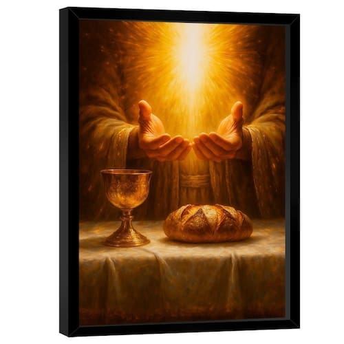 Quadro Decorativo Jesus Tomou O Pão, Abençoou-o Quadro Decorativo Jesus Tomou o pão, Abençoou-o Moldura Preta - 84x54cm - Especificações