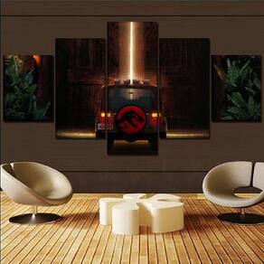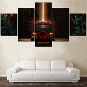 Quadro Decorativo Jurassic Park 5 peças 130x65 cm em tecido