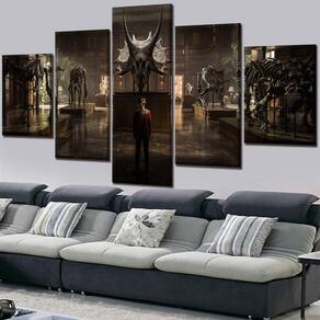 Quadro Decorativo Jurassic Park2 5 peças 130x65 cm em tecido