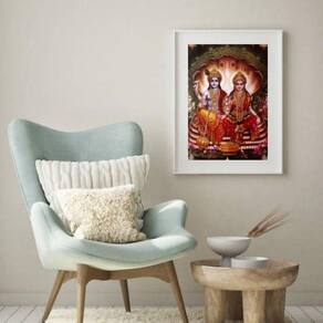 Quadro decorativo lakshmi e vishnu - 60x48cm Moldura: madeira preta Informações do produto tire todas as suas dúvidas no descritivo abaixo: decoração para quarto, sala, cozinha, escritório, área gourmet e muito mais. Chega de paredes vazias medidas - cada peça tem 60x48cm . Material do papel - papel fotográfico brilhante de altíssima resolução acabamento - todos os quadros são acompanhados de vidro para proteção da imagem. - moldura em madeira maciça na cor preta ou branca conforme produto escolhido e pendurador. - paspatur branco com 7cm de largura - os quadros são embalados de forma segura com plástico bolha com camada dupla de acordo com o tamanho dos quadros. Garantia - garantia de 3 meses. Meu quadro chegou. Como posso fixá-lo Você precisa apenas de um martelo e um prego, pois os quadros já vão acompanhados de penduradores. Esta é a forma mais indicada. Como posso limpar meu quadro A limpeza é feita como um móvel comum da sua casa. Apenas um pano seco ou espanador são suficientes para tal Ean: 7898158200358