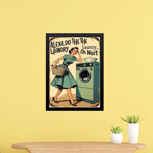 Quadro decorativo lavanderia vintage alexa 24x18cm Cor: moldura preta Informações do produto tire todas as suas dúvidas no descritivo abaixo: decoração para quarto, sala, cozinha, escritório, área gourmet e muito mais. Chega de paredes vazias medidas - cada peça tem 24x18cm a5 . Material do papel - papel fotográfico brilhante de altíssima resolução acabamento - todos os quadros são acompanhados de uma película de acetato para proteção da imagem. - os quadros são embalados de forma segura com plástico bolha com camada dupla de acordo com o tamanho dos quadros. - de 3 meses. Meu quadro chegou. Como posso fixá-lo Você precisa apenas de um martelo e um prego, pois os quadros já vão acompanhados de penduradores. Esta é a forma mais indicada. Caso prefira, você pode utilizar uma fita dupla face neste caso, sugerimos de alta qualidade para evitar que descole e seu quadro caia . Como posso limpar meu quadro A limpeza é feita como um móvel comum da sua casa. Apenas um pano seco ou espanador são suficientes para tal Marca: Não Informado