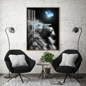 Prepara-se para transformar seu espaço com nosso quadro decorativo de leão, uma peça única que é ideal para quem curte decoração minimalista para sala de estar, quarto ou até mesmo para entrada de hall e escritório. A combinação do leão com a borboleta vibrante é como força e beleza dançando juntas. E o melhor: o nosso quadro com leão olhando para a borboleta é feito com materiais de alta qualidade e com entrega rápida.