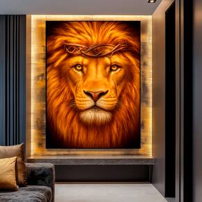 Quadro Decorativo Leão Celestial Moldura Preta - 180x105cm -