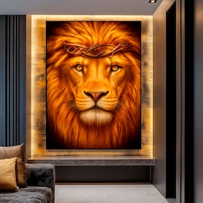 Quadro Decorativo Leão Celestial Moldura Preta e Vidro - 150x100cm -
