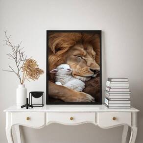 Quadro decorativo leão com cordeiro 33x24cm Cor: moldura preta Informações do produto tire todas as suas dúvidas no descritivo abaixo: decoração para quarto, sala, cozinha, escritório, área gourmet e muito mais. Chega de paredes vazias medidas - cada peça tem 33x24cm a4 . Material do papel - papel fotográfico brilhante de altíssima resolução acabamento - todos os quadros são acompanhados de uma película de acetato para proteção da imagem. - os quadros são embalados de forma segura com plástico bolha com camada dupla de acordo com o tamanho dos quadros. - de 3 meses. Meu quadro chegou. Como posso fixá-lo Você precisa apenas de um martelo e um prego, pois os quadros já vão acompanhados de penduradores. Esta é a forma mais indicada. Caso prefira, você pode utilizar uma fita dupla face neste caso, sugerimos de alta qualidade para evitar que descole e seu quadro caia . Como posso limpar meu quadro A limpeza é feita como um móvel comum da sua casa. Apenas um pano seco ou espanador são suficientes para tal Marca: Não Informado