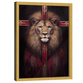 Quadro Decorativo Leão Cruz Vermelha Moldura Preta e Vidro - 150x100cm -
