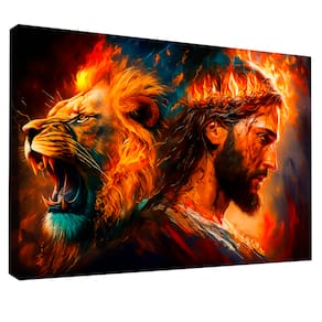 Quadro Decorativo Leão de Judá e Cristo Borda Infinita - 60x40cm -