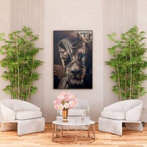 Quadro Leão de Judá e Cristo -- BR ARTES Médio 84x54 -