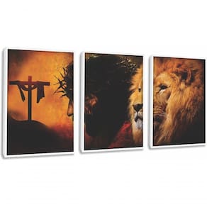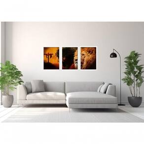 Quadro Decorativo Leão De Juda Jesus Cristo Com Moldura Branco