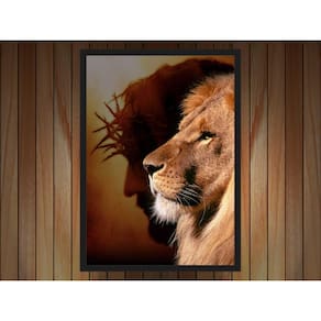 Tamanho: Medidas: 42 cm x 30 cm. Deixe sua casa ainda mais bonita e moderna com esse Quadro Decorativo Leão De Judá Jesus Religiosidade G002. O Quadro possui impressão em policarbonato específico, próprio para o uso na indústria gráfica, consiste, basicamente, de uma camada de revestimento texturizado no qual a impressão se conserva impermeável, resistente a riscos e a exposição solar.