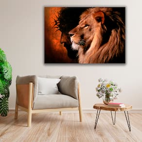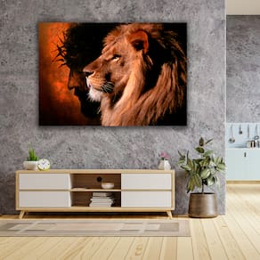 Quadro Decorativo Leão e Cristo Borda Infinita - Médio 84x54 -
