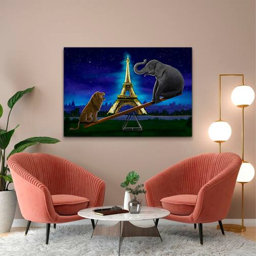 Quadro Leão e Elefante -- BR ARTES Médio 84x54 -