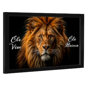 Quadro Decorativo Leão Ele Vive, Ele Reina Borda Infinita - 84x54cm -
