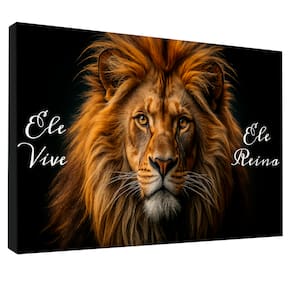 Quadro Decorativo Leão Ele Vive, Ele Reina Borda Infinita - 60x40cm -