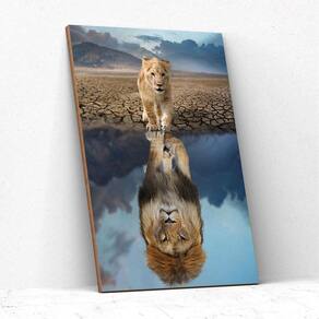 Quadro Decorativo Leão Filhote Lago Savana Montanha Natureza