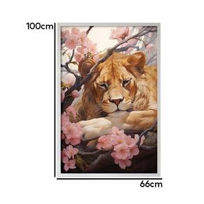 Quadro Decorativo Leão Flor Moldura Cx Alta 100x66