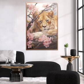 Quadro Decorativo Leão Flor Moldura Cx Alta 100x66