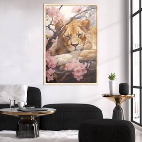 Quadro Decorativo Leão Flor Moldura Cx Alta 100x66