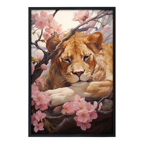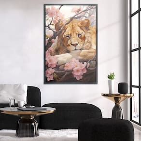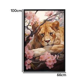 Quadro Decorativo Leão Flor Moldura Cx Alta 100x66