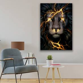 Quadro Leão Iluminado -- BR ARTES Pequeno 60x40 -