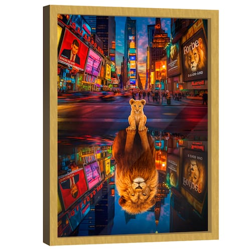 Quadro Decorativo Leão Mindset é Tudo Moldura Dourada e Vidro - 150x100cm -