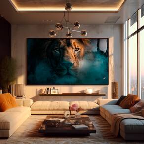 Quadro Decorativo Leão na Fumaça Borda Infinita - 118x78cm -