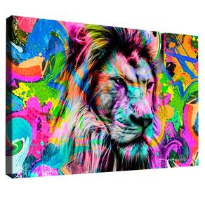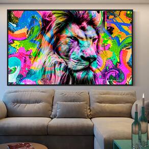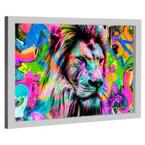 Quadro Decorativo Leão Pop Art Moldura Preta - 84x54cm -