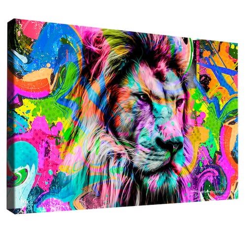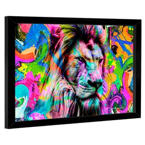 Quadro Decorativo Leão Pop Art Borda Infinita - 84x54cm -