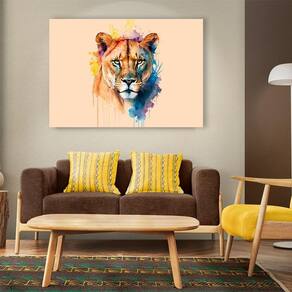 Quadro Decorativo Leoa Colorida QUADRO DECORATIVO LEOA COLORIDA P (60 x 40) S/ Moldura - -Qualidade Premium (padrão museu)
