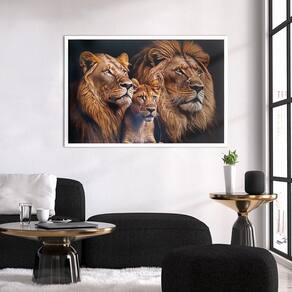 Quadro Decorativo Leões Moldura Cx Alta 100x66 Titulo Moldura Branca