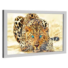 Quadro Decorativo Leopardo Olhos Azuis Moldura Preta e Vidro - 118x78cm -