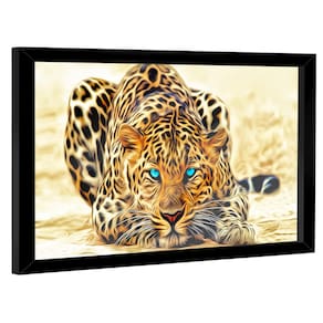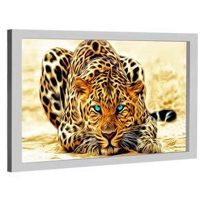 Quadro Decorativo Leopardo Olhos Azuis Borda Infinita - 150x100cm -