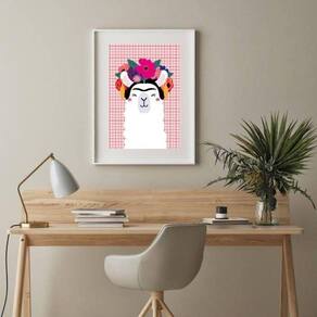 Quadro decorativo lhama frida - 60x48cm Moldura: madeira branca Informações do produto tire todas as suas dúvidas no descritivo abaixo: decoração para quarto, sala, cozinha, escritório, área gourmet e muito mais. Chega de paredes vazias medidas - cada peça tem 60x48cm . Material do papel - papel fotográfico brilhante de altíssima resolução acabamento - todos os quadros são acompanhados de vidro para proteção da imagem. - moldura em madeira maciça na cor preta ou branca conforme produto escolhido e pendurador. - paspatur branco com 7cm de largura - os quadros são embalados de forma segura com plástico bolha com camada dupla de acordo com o tamanho dos quadros. Garantia - garantia de 3 meses. Meu quadro chegou. Como posso fixá-lo Você precisa apenas de um martelo e um prego, pois os quadros já vão acompanhados de penduradores. Esta é a forma mais indicada. Como posso limpar meu quadro A limpeza é feita como um móvel comum da sua casa. Apenas um pano seco ou espanador são suficientes para tal