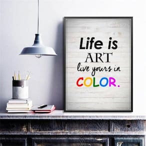 Quadro decorativo life is art 24x18cm Moldura: madeira preta Informações do produto tire todas as suas dúvidas no descritivo abaixo: decoração para quarto, sala, cozinha, escritório, área gourmet e muito mais. Chega de paredes vazias medidas - cada peça tem 24x18cm a5 . Material do papel - papel fotográfico brilhante de altíssima resolução acabamento - todos os quadros são acompanhados de uma película de acetato para proteção da imagem. - os quadros são embalados de forma segura com plástico bolha com camada dupla de acordo com o tamanho dos quadros. Garantia - garantia de 3 meses. Meu quadro chegou. Como posso fixá-lo Você precisa apenas de um martelo e um prego, pois os quadros já vão acompanhados de penduradores. Esta é a forma mais indicada. Caso prefira, você pode utilizar uma fita dupla face neste caso, sugerimos de alta qualidade para evitar que descole e seu quadro caia . Como posso limpar meu quadro A limpeza é feita como um móvel comum da sua casa. Apenas um pano seco ou espanador são suficientes para tal Ean: 7890179393361