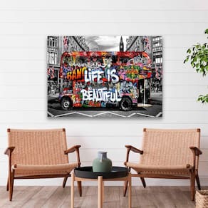 Quadro Decorativo Life Is Beautiful QUADRO DECORATIVO LIFE IS BEAUTIFUL M (84 x 54) S/ Moldura - -Qualidade Premium (padrão museu)