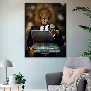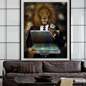 QUADRO DECORATIVO LION MONEY GG (150 x 100) S/ Moldura -