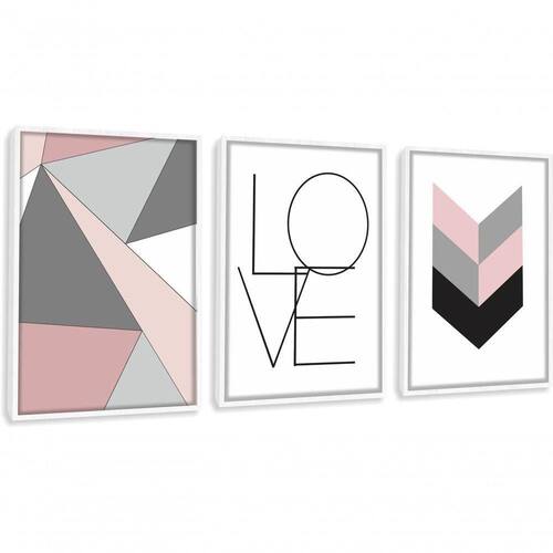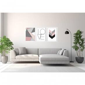 Quadro Decorativo Love Amor Abstratos Geométricos Com Moldura Branco