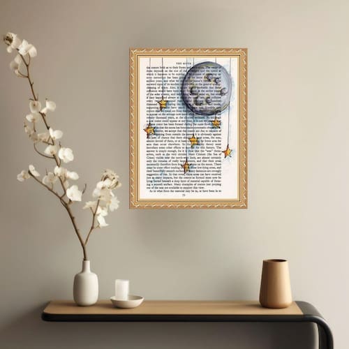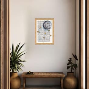 Quadro decorativo lua e estrelas vintage 45x34cm - com vidro Cor: moldura preta Informações do produto tire todas as suas dúvidas no descritivo abaixo: decoração para quarto, sala, cozinha, escritório, área gourmet e muito mais. Chega de paredes vazias medidas - cada peça tem 45x34cm a3 . Material do papel - papel fotográfico brilhante de altíssima resolução acabamento - todos os quadros são acompanhados de vidro para proteção da imagem. - moldura em madeira maciça na cor preta ou branca conforme produto escolhido e pendurador . - os quadros são embalados de forma segura com plástico bolha com camada dupla de acordo com o tamanho dos quadros. Garantia - garantia de 3 meses. Meu quadro chegou. Como posso fixá-lo Você precisa apenas de um martelo e um prego, pois os quadros já vão acompanhados de penduradores. Esta é a forma mais indicada. Como posso limpar meu quadro A limpeza é feita como um móvel comum da sua casa. Apenas um pano seco ou espanador são suficientes para tal