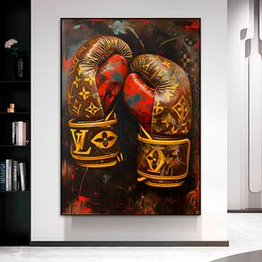 Quadro Decorativo Luva de Boxe Grafite Moldura Branca - 118x78cm -