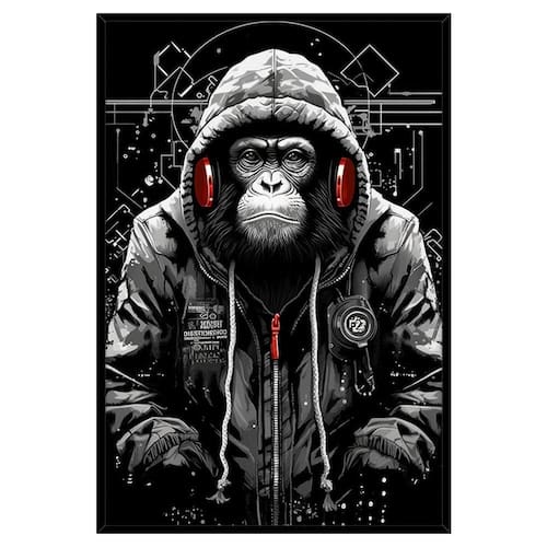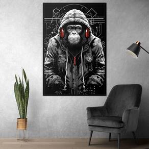 Quadro Decorativo Macaco Fone Estiloso Moldura Cx Alta 40x60