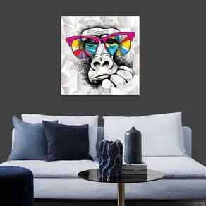 Quadro Decorativo Macaco Óculos Colorido Midiapoparte 60X60 Quadro decorativo em tecido canvas para salas, quartos, escritórios e home office.Esta composição de quadros decorativos em canvas para ambientes internos é ideal para salas, quartos, escritórios, home office´s, etc. Os Quadros da linha MidiaPopArte são produzidos com impressão profissional em alta definição sobre tecido canvas tecido 100% algodão na gramatura de 270 g/m² esticados em um chassi de madeira reflorestada, tratada e imunizada de 3 a 4 cm de espessura.Nossas impressões de arte têm imagens nítidas em alta resolução. Valorize e decore seu ambiente com nossos lindos quadros decorativos. As laterais da tela são recobertas com o próprio canvas impresso criando a sensação de continuidade de imagem. A tela vai pronta para pendurar na parede bastando utilizar pregos ou parafusos no local desejado.As impressões em tecido canvas tendem uma maior absorção da tinta por parte do tecido, por conta disso, podem ficar mais opacas. Nenhum tecido permite um resultado com uma impressão brilhosa. Exatamente por conta disso, os quadros da linha Canvas MidiaPopArte recebem uma camada de VERNIZ especial para compensar essa opacidade, proporcionando cores mais vivas, maior durabilidade e acabamento diferenciado e exclusivo.Para a fixação do quadro na parede, recomendamos usar parafusos e buchas de 8. Para paredes de gesso ou DryWall usar buchas específicas. Para a garantia do produto, os cuidados abaixo devem ser observados: Tamanho total do quadro: 60X60CmTipo de impressão: Impressão digital em altíssima definição em tela canvasAcabamento: Acabamento em verniz UV Estrutura: Chassis na espessura entre 3,5 a 4 cm Embalagem: Plástico bolha e Papelão MicroonduladoMarca: MidiaPopArteCuidados com o produtoEste produto deve ser utilizado apenas em ambientes internos;Para limpeza utilize apenas um pano seco ou espanador;Não exponha o produto em paredes com sinais de umidade ou sobe luz direta do sol;Os objetos ou móveis utilizados nas imagens dos ambientes são apenas ilustrativos e não acompanham o produto;As cores dos quadros podem sofrem variações dependendo da resolução e configuração do seu monitor;As imagens dos quadros nos ambientes são meramente ilustrativas e não configuram a real dimensão do produto;Não nos responsabilizamos pela montagem ou instalação do produto. Considerações importantes1. se eu não gostar do produto posso devolvê-loA midia pop arte garante a devolução do produto dentro de um prazo de 7 dias corridos contados a partir da data de recebimento. 2. os quadros decorativos em canvas midia pop arte acompanham moldurasNão, os quadros são esticados em chassis de madeira reflorestada com a espessura de 3,5 e 4 cm que garantem um acabamento diferenciado e uma estrutura bastante resistente. 3. como fixar o quadro na paredePara fixar na parede é muito simples. Basta apenas um furo na parede com buchas e parafusos de 8".