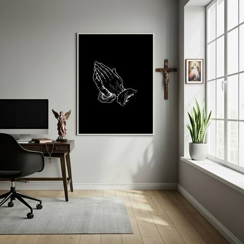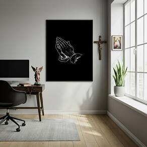 Quadro Decorativo Mãos Prece - 70x50cm - Cor: Moldura Preta