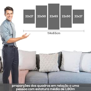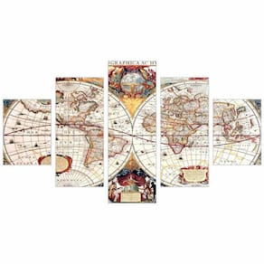 Quadros Decorativos são uma excelente opção para transformar ambientes monótonos em locais alegres, confortáveis e aconchegantes. O Quadro Decorativo Mapa Mundi Antigo é formado por 5 peças de três tamanhos diferentes que se complementam e, ao serem instaladas lado a lado, formam um lindo desenho. O Quadro é produzido em tecido sintético semi brilho, com impressão de alta qualidade e durabilidade. Aplicado em madeira pinus de reflorestamento tratada com espessura de 2,5cm, suas bordas são a extensão da própria imagem nas laterais, assim, não é necessário o uso de molduras para dar o acabamento. Características: - Tecido esticado sobre o chassi de madeira e pregado no verso - Não necessita de moldura - Impresso em tecido sintético semi brilho - Composto por 5 telas que se complementam Composição: 05 Quadros com tamanho total de 114 x 65 cm Peças menores: 02 unidades - 22 x 30 cm Peças médias: 02 unidades - 22 x 50 cm Peça central: 01 unidade - 22 x 65 cm Espaçamento sugerido entre as peças: 2,5 cm Especificações Técnicas Produto: Quadro decorativo Quantidade: 5 peças Material: Madeira e tecido sintético Tamanho total CxA : 114 x 65 cm Espessura: 2,5cm Tema: Mapa Mundi Antigo Ideal para: Escritórios, sala, hall e demais ambientes Conteúdo da embalagem: 1 quadro composto por 5 peças Formas de Instalação: Para a instalação correta dos quadros, é necessário deixar um espaçamento de aproximadamente 2,5cm entre as peças. A instalação é simples e pode ser feita com pregos, parafuso e bucha ou fita dupla face. Todos irão manter os quadros bem fixos na parede. Limpeza e Manutenção: Para limpeza, utilize apenas um espanador ou um pano umedecido com água, sem produtos químicos, isso irá garantir também a durabilidade do produto.