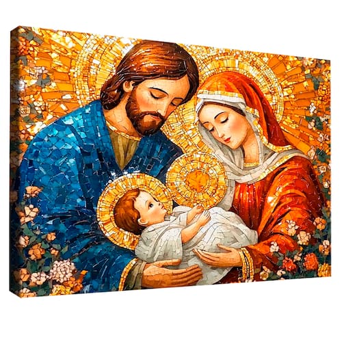 Quadro Decorativo Maria, José e Jesus em Mosaico Borda Infinita - 118x78cm -