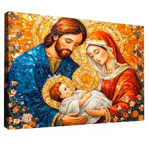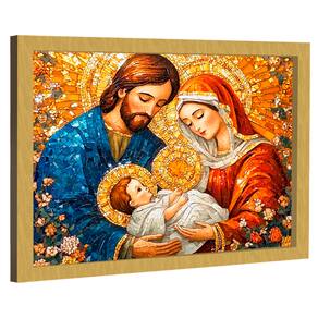 Quadro Decorativo Maria, José e Jesus em Mosaico Moldura Dourada - 60x40cm -