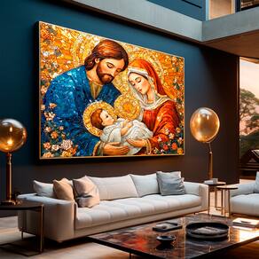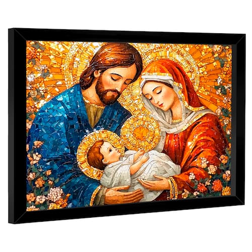 Quadro Decorativo Maria, José e Jesus em Mosaico Moldura Preta - 84x54cm -