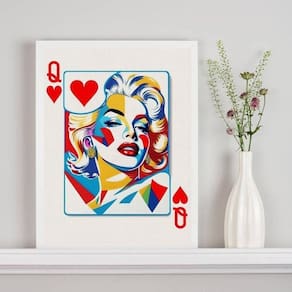 Quadro decorativo marilyn monroe carta baralho 33x24cm - com vidro Cor: moldura branca Informações do produto tire todas as suas dúvidas no descritivo abaixo: decoração para quarto, sala, cozinha, escritório, área gourmet e muito mais. Chega de paredes vazias medidas - cada peça tem 33x24cm a4 . Material do papel - papel fotográfico brilhante de altíssima resolução acabamento - todos os quadros são acompanhados de vidro para proteção da imagem. - moldura em madeira maciça na cor preta ou branca conforme produto escolhido e pendurador . - os quadros são embalados de forma segura com plástico bolha com camada dupla de acordo com o tamanho dos quadros. - de 3 meses. Meu quadro chegou. Como posso fixá-lo Você precisa apenas de um martelo e um prego, pois os quadros já vão acompanhados de penduradores. Esta é a forma mais indicada. Como posso limpar meu quadro A limpeza é feita como um móvel comum da sua casa. Apenas um pano seco ou espanador são suficientes para tal