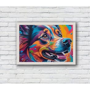 Quadro Decorativo MDF 20x28 c/ Moldura Colorfull Dog - Moldura: Branca
