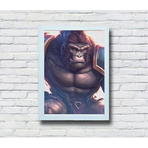O quadro decorativo que vai além das expectativas, feito em MDF. Escolha entre a versão com moldura ou sem moldura, e desfrute da nossa impressão de alta qualidade, que oferece cores vibrantes e arte exclusiva para um impacto duradouro do "Gorila Guerreiro".